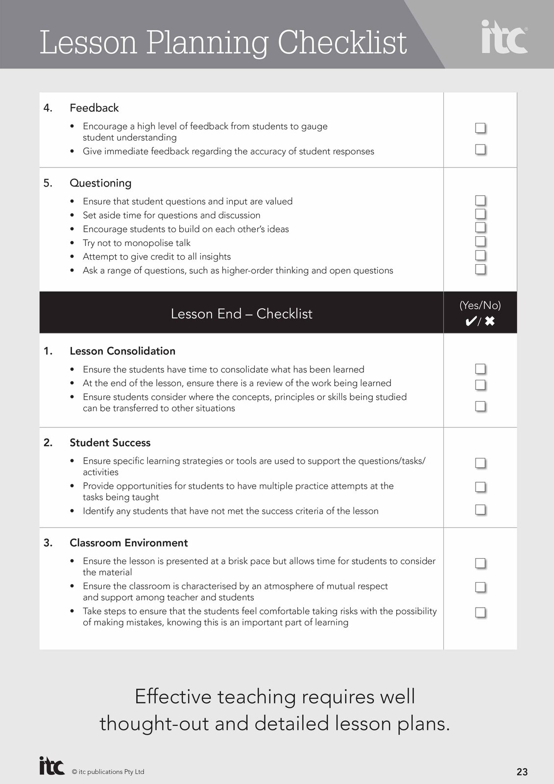- Lesson planning checklist and templates
