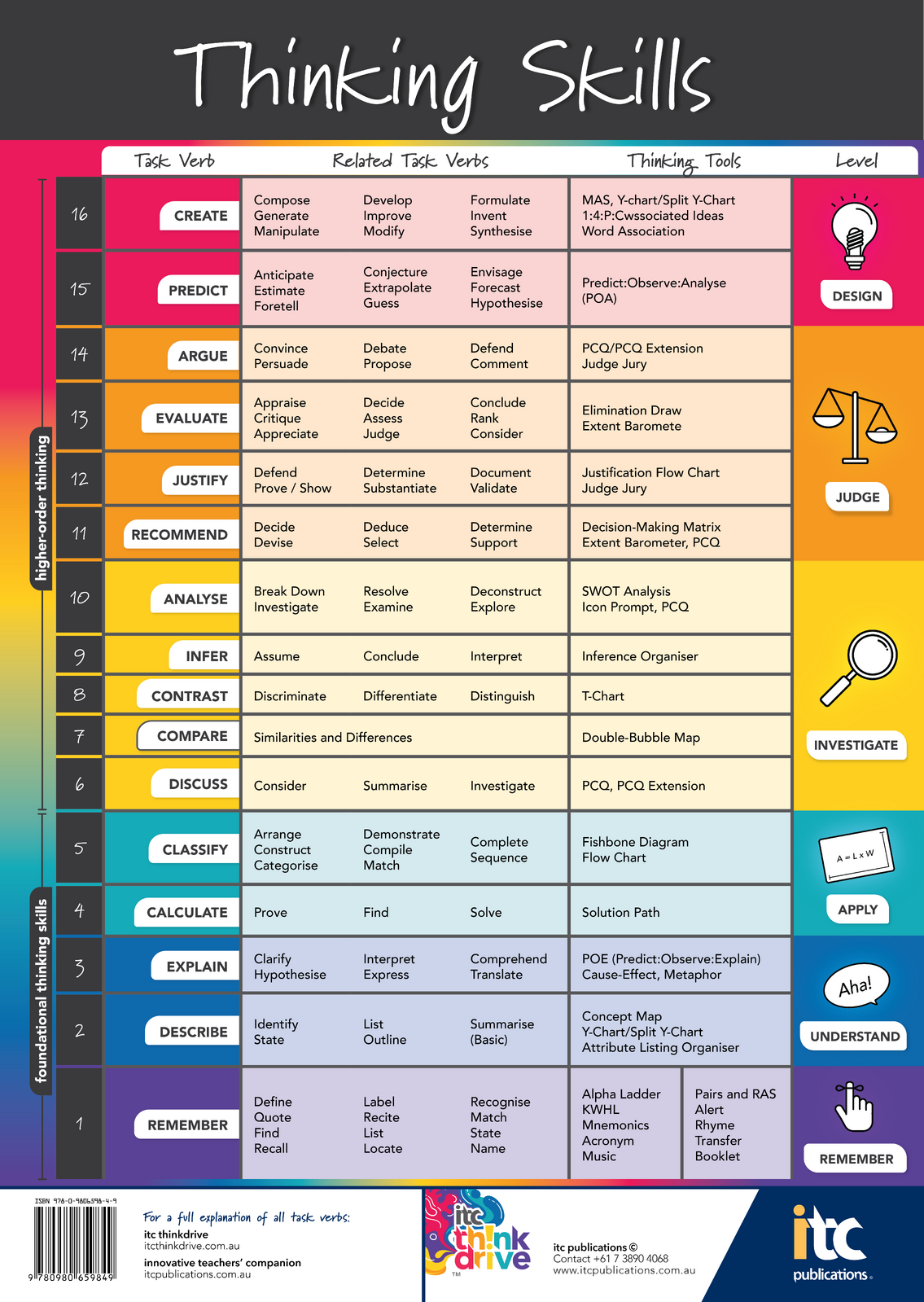 It may look like a simple poster with pretty pictures but our Thinking Skills Framework poster is in fact our most powerful and central resource – it is the foundation upon which we promote higher-order thinking in classrooms.